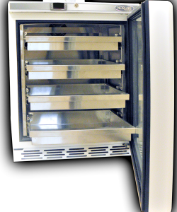 用于血庫的自動除霜冰箱中的四個滑動抽屜具有88個血袋的組合存儲容量。 鋁內部易于清潔,基座安裝的強制空氣前端呼吸制冷系統(tǒng)允許機柜封閉在兩側。 其空冷冷凝裝置配有過濾網(wǎng),也便于維護。